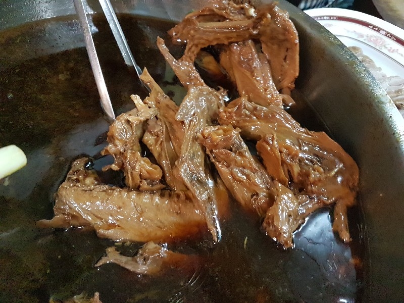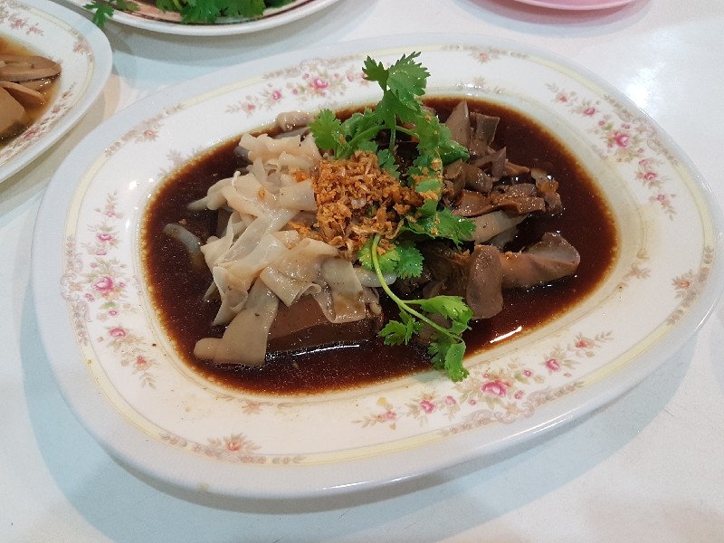 หาที่นั่งได้เข้าที่เข้าทางแล้ว ก็เริ่มทยอยของอร่อยมาวางได้ครับ เป็ดพะโล้สับ 1 กั๊ก หรือจานกลาง ( 150 บาท ) เป็ดพะโล้เนื้อนุ่ม น้ำพะโล้เค็มนำ แต่ไม่ใช่เค็มจัด หวานตามมาไกลมาก น่าจะถูกใจหลาย ๆ ท่านครับ หน่อไม้จีน ขาดมิได้ ( 80 บาท ) เค้าเคี่ยวเม่งซุ่งได้นุ่มพอดี น้ำซุบซึมวับเข้าไปในเนื้อหน่อไม้อร่อยมากเลยครับ ไส้เป็ด + เครื่องใน ( 150 บาท ) เครื่องในแจ่มมากครับ ต้มมาสุกพอดี ตับนุ่ม ๆ กึ๋นก็ไม่แข็งครับ ส่วนไส้นั้น ผ่านฉลุย ไส้เป็ด จานเล็ก ( 80 บาท ) ก๋วยเตี๋ยวเป็ดเจ้าดัง ๆ ทั้งหลาย จะวัดฝีมือกันตรงไส้แก้ว ที่เป็นส่วนไส้ใหย่ของเป็ดนี่แหละครับว่า ร้านไหนจะมีสูตรการล้างให้หมดกลิ่นจนสิ้น และต้องกรอบกรุบ เมื่อโดนน้ำร้อน ๆ ลวกเพียงผ่านเท่านั้น ร้านนี้ทำได้ดี แต่ชายกางยังให้เป็นที่สองในใจนะครับ เป็ดตุ๋นฟัก มะนาวดอง ( 65 บาท ) เป็ดชิ้นใหญ่ ฟักชิ้นโต ... น้ำซุบเลยน้อยไปนิดนะครับ แต่รสชาติเค้าดีครับ ปีก + ตีน อบบะหมี่ ( 250 บาท ) แหม !! วันหน้า จะมากินหม้อนี้ หม้อเดียวเลยครับ อิ่มมาก ยอดคะน้าน้ำมันหอย ( 80 บาท ) คะน้าสุกกำลังดี กรอบ น้ำมันหอยปรุงรสมาดีครับ กระเทียมเจียวเยอะดี ก๋วยเตี๋ยวเป็ดหั่น ชามละ 50 บาทครับ ข้าวสวย ถ้วยละ 7 บาท