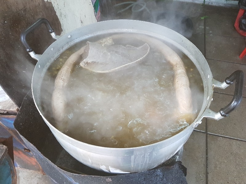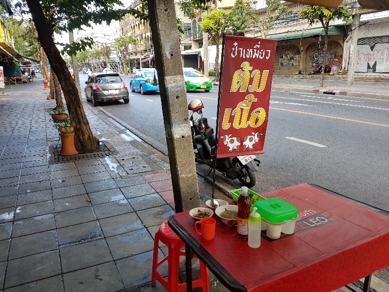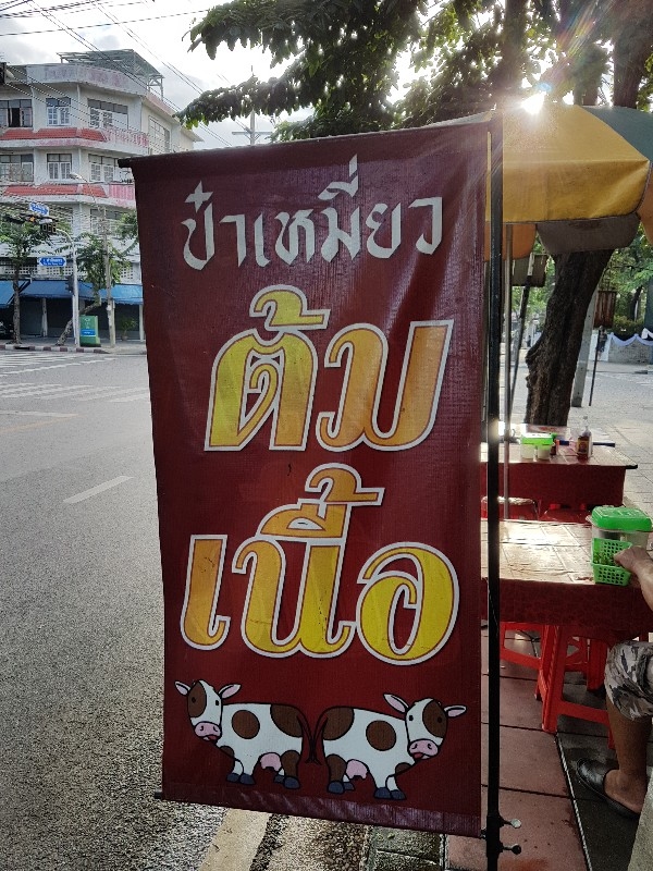 อาหารโบร่ำโบราณอีกขนาน ที่หาร้านกินกันได้น้อยลง ๆ ไปทุกที คือ ต้มเครื่องในวัว ซึ่งเป็นการต้มเครื่องในวัวด้วยเครื่องหอมต่าง ๆ ที่เป็นสมุนไพรไทย ๆ ทั้ง ข่า ตะไคร้ ใบมะกรูดและลูกมะกรูด และใช้เวลาในการต้มเคี่ยวนานหลายชั่วโมงกว่าจะได้ที่ กินได้กัน ร้านดั้งเดิมที่หลงเหลืออยู่ในเมืองกรุง ที่รู้จักกันดีก็น่าจะเป็นร้าน หม่อง วัดราชบพิตรฯ ที่พี่เหิรฟ้านำมาให้ชมกันไปแล้ว ซึ่งชายกางเองก็เป็นลุกค้าของร้านหม่องมาน่าจะยี่สิบปี ครั้งสุดท้ายที่ไปก็น่าจะ 5 ปีได้แล้ว ขากลับได้ใบสั่งมาเป็นฮู้ ติดกระจกหน้าไปหนึ่งใบ สนนราคาค่าจอด 500 บาท จนมาหัวปีกลาย พี่อาร์ท Black Oven ผู้คร่ำหวอดร้านอาหารอร่อย ย่านฝั่งธนฯ ละแวกวงเวียนใหญ่ ท่าดินแดง ได้แนะนำให้ชายกางไปชิมต้มเครื่องในวัวเจ้านึง เป็นร้านเล็ก ๆ ริมถนน ตั้งโต๊ะให้คนนั่งกินได้แค่ 3 โต๊ะเท่านั้นเองครับ ส่วนที่ให้บริการก็ใช้เนื้อที่ไม่มากนัก พออาศัยว่างั้นกันดีกว่า แต่พอได้ชิมไปแล้วครั้งนึง มันติดใจแกมสงสัย จึงต้องแวะเวียนไปอีกจนแทบนับครั้งไม่ถ้วน สุดท้ายมั่นใจแล้วว่า ต้มเครื่องในวัวเจ้านี้ แจ๋วจริง ควรนำมาบอกต่อ ๆ กันไป ให้คนรู้จัก “ ป๋าเหมี่ยว ” กันหน่อยครับ เผื่อใครที่ชื่นชอบกินต้มเครื่องในวัวแบบตำรับนี้ ได้แวะเวียนมาชิมกันครับ เผื่อท่านจะชอบครับผม ว่าแล้ว ตามชายกางไปรู้จักกับ ป๋าเหมี่ยวกันครับ