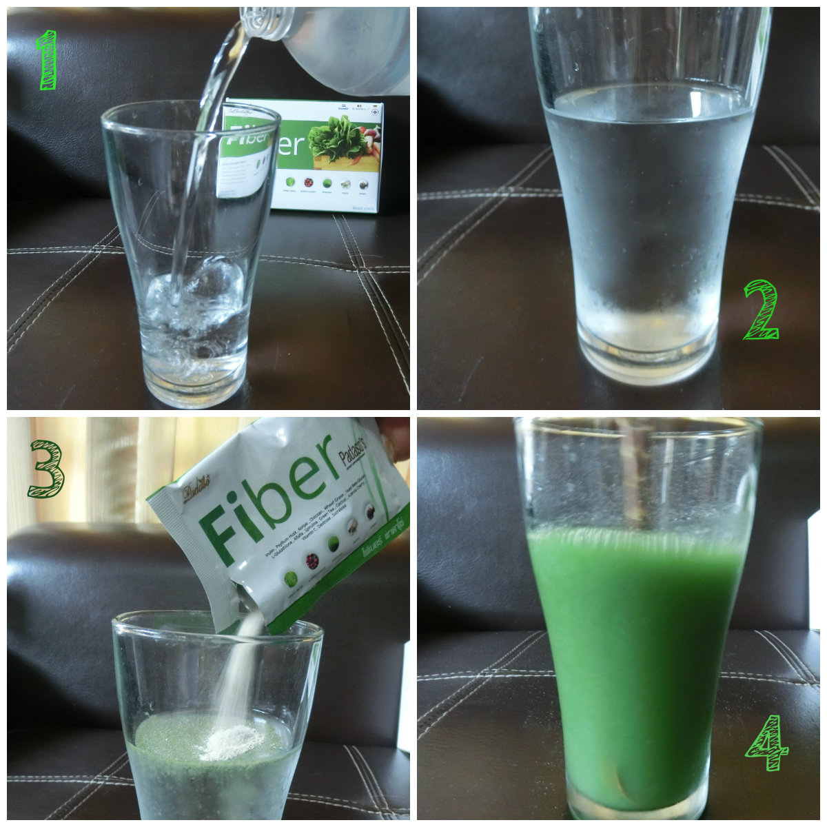 3. ฉีกซอง –เทไฟเบอร์ พาดาโซ่ลงไปในแก้ว