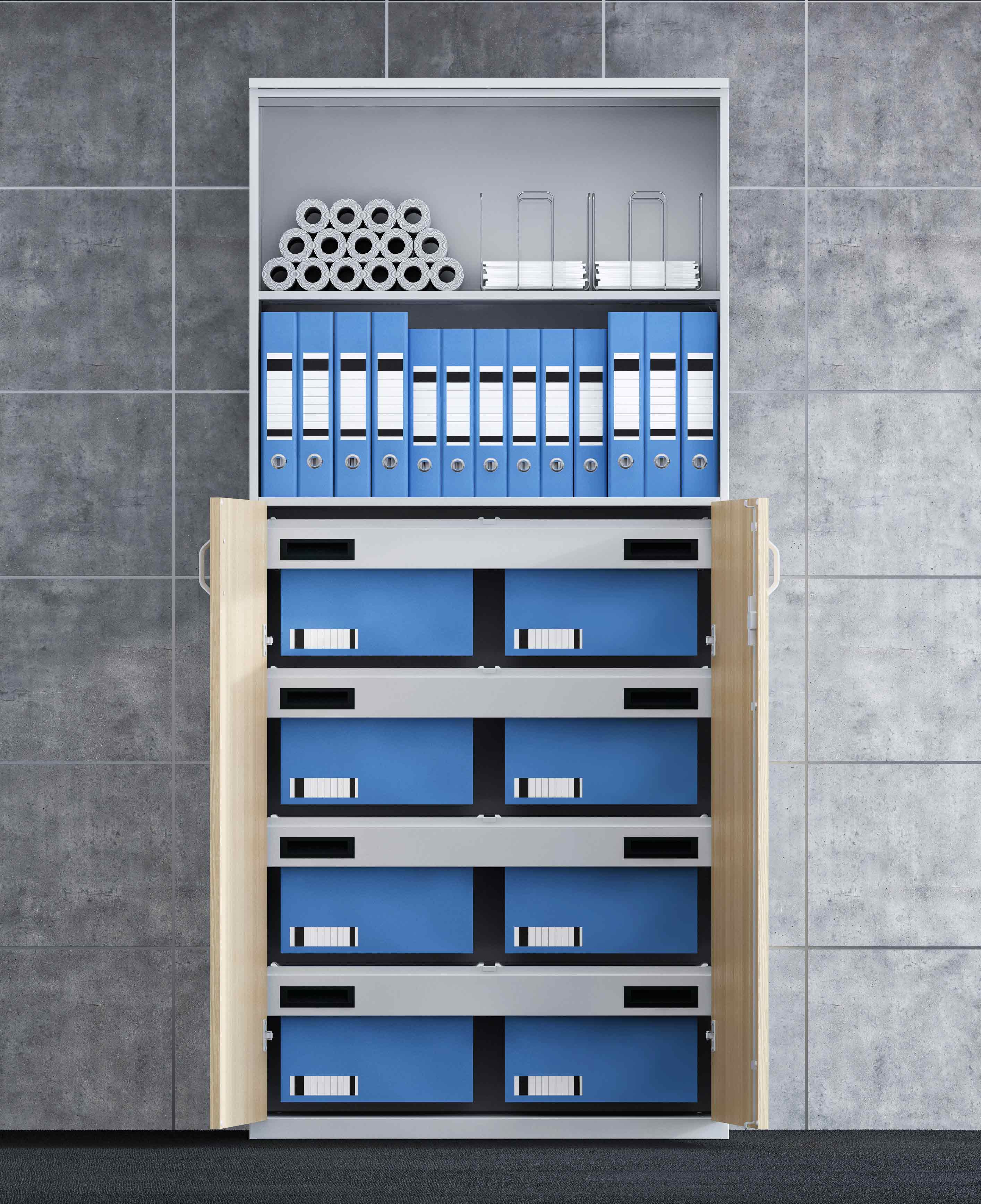 เพราะพื้นที่ห้องขนาดออฟฟิศนั้นมีค่ามาก เราควรจะเลือกเฟอร์นิเจอร์ที่ใช้ประโยชน์ในแนวตั้งได้เพื่อประหยัดพื้นที่ห้องทางแนวราบ เฟอร์นิเจอร์ประเภทนี้อาจะเป็นเฟอร์นิเจอร์ที่สามารถตั้งซ้อนกันได้ หรือเป็นเฟอร์นิเจอร์ที่ติดยึดเข้ากับผนังซึ่งจะช่วยให้ห้องดูมีพื้นที่มากขึ้น