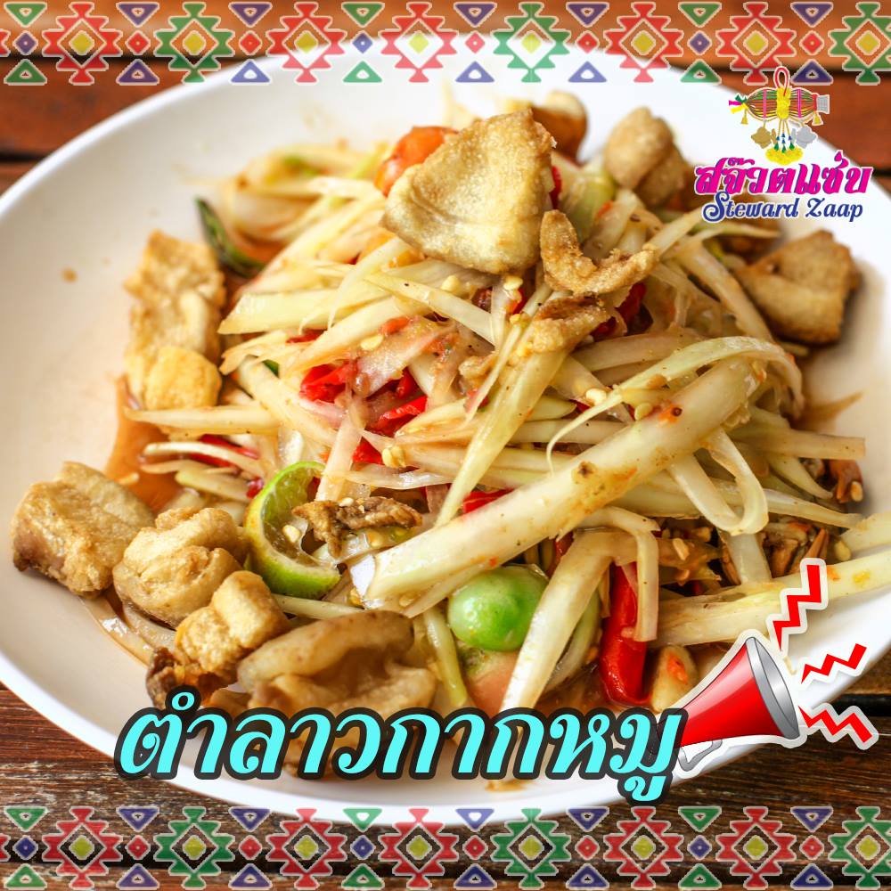 สำหรับไผที่นิยมความแซ่บบวกความมันส์ของกากหมู แต่ยังชอบสไตล์ตำลาวอยู่ละก็ กระโผมแนะนำตำจานนี้ที่ใส่กากหมูเจียวหรือแคบหมูติดมันเข้าไปด้วยย เคี้ยวหนึบๆแซ่บขนาด