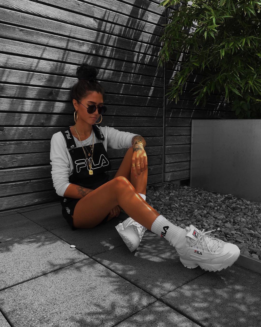 ส่วนพื้นกลาง (Midsole) ก็จะออกแบบมาหนากว่าปรกติ เพื่อเพิ่มความสูงให้กับรองเท้า นอกจากนี้ยังมีการแสตมป์โลโก้คำว่า FILA ไว้ที่ด้านข้างของรองเท้าด้วย
