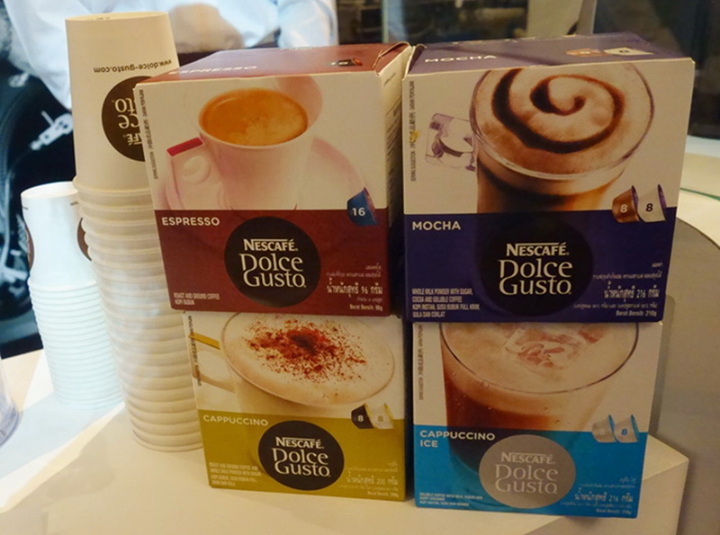 ความง่ายของมันอยู่ที่การทำกาแฟที่แสนง่ายดาย แค่เอาแคปซูลกาแฟมาใส่กดปุ่มจิ้ม 1 จึ้กก็เรียบร้อย เจ้าแคปซูลพวกนี้เป็นซีลที่ภายในจะใส่เมล็ดกาแฟที่บดแล้วเอาไว้นั่นเอง ซึ่งจะมีกาแฟหลากหลายรสชาติให้เลือกมากกว่า 40 ชนิด แต่ว่าจะเริ่มวางจำหน่ายในบ้านเราแค่ 4 รสชาติก่อนนะครับ มีให้เลือกคือ เอสเปรสโซ, มอคค่า, คาปูชิโน และ ไอซ์คาปูชิโน ก็เป็น 4 รสชาติหลักๆ ที่บ้านเรานิยมทานกัน