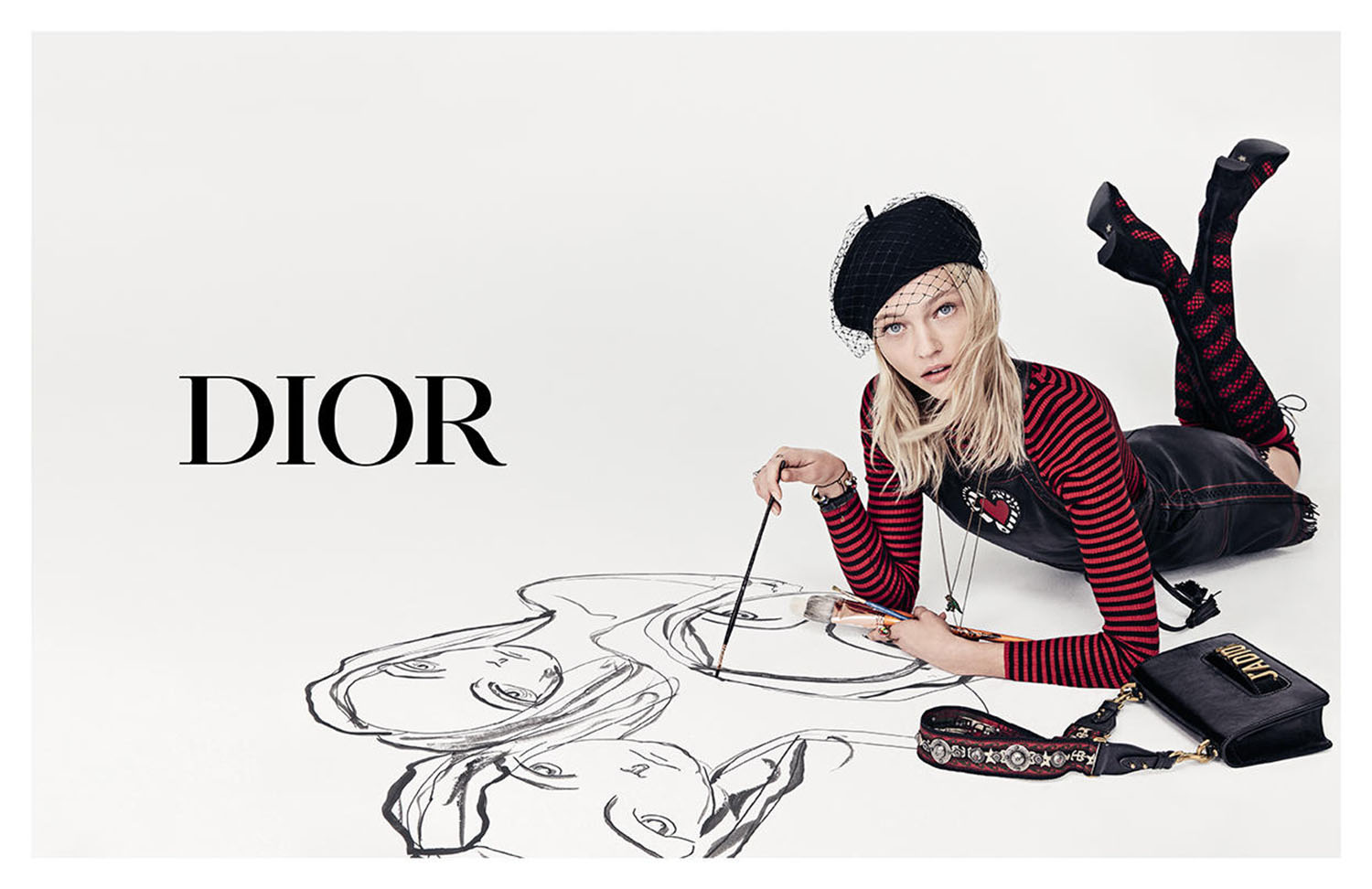 ทางฟากผู้ปลุกกระแสเฟมินิสต์ (ตัวจริง) อย่าง Dior กลับมองย้อนถึงความเรียบง่ายของภาพแคมเปญฉากขาวตามสไตล์แฟชั่นกลิ่นอายยุค’ 60s ซึ่งงานนี้ มาเรีย กราเซีย คิอูริ เลือกแปลงโฉมรัสเซียนสตาร์บนรันเวย์อย่าง Sasha Pivovarova ให้กลายเป็นศิลปินสาวฝรั่งเศสที่บรรจง พร้อมวลีเด็ดชวนคิดตามบนทีเชิร์ตลายทางที่ว่าด้วยประโยค …… Why Have There Been No Great Women Artists?