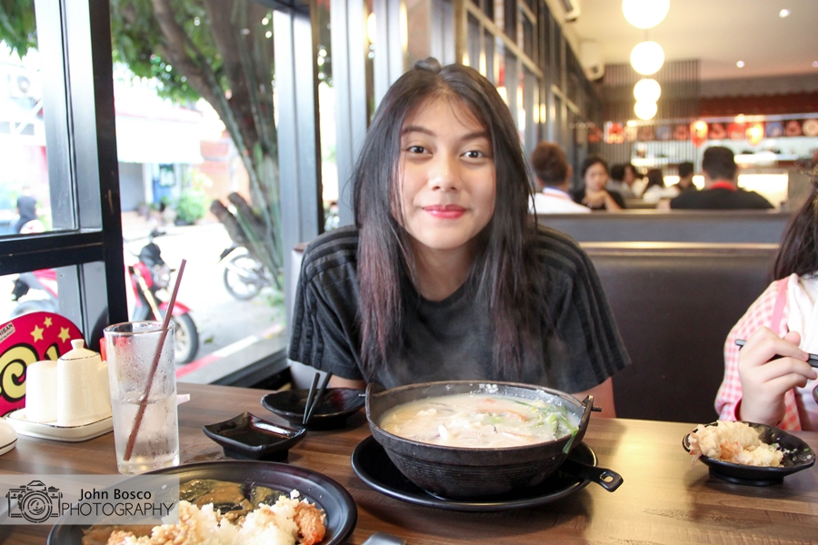 พี่ปริมสั่งหม้อไฟซีฟู้ดซุปเต้าหู้ 125บาท ก้อเป็นแบบใส่หมึก กุ้งปลาแบบนั้นน่ะ ไม่ได้หวังว่าจะมีหอยแมลงภู่นิวซีแลนด์ หรือเนื้อล๊อบเสตอร์ใส่มา เพราะแอบอ่านรีวิว หลายคนพูดแบบผิดหวังนึกว่าจะดีกว่านี้ ของถูกแล้วดีหายากมาอ่ะ นี่ก้อสมราคาดีละ น้องกุลสั่งอุด้งหน้ากุ้งเทปุระ 75 บาท มีกุ้งผอมๆยาวๆมาสองตัว ก้อตามราคาอีกนั่นแหละ