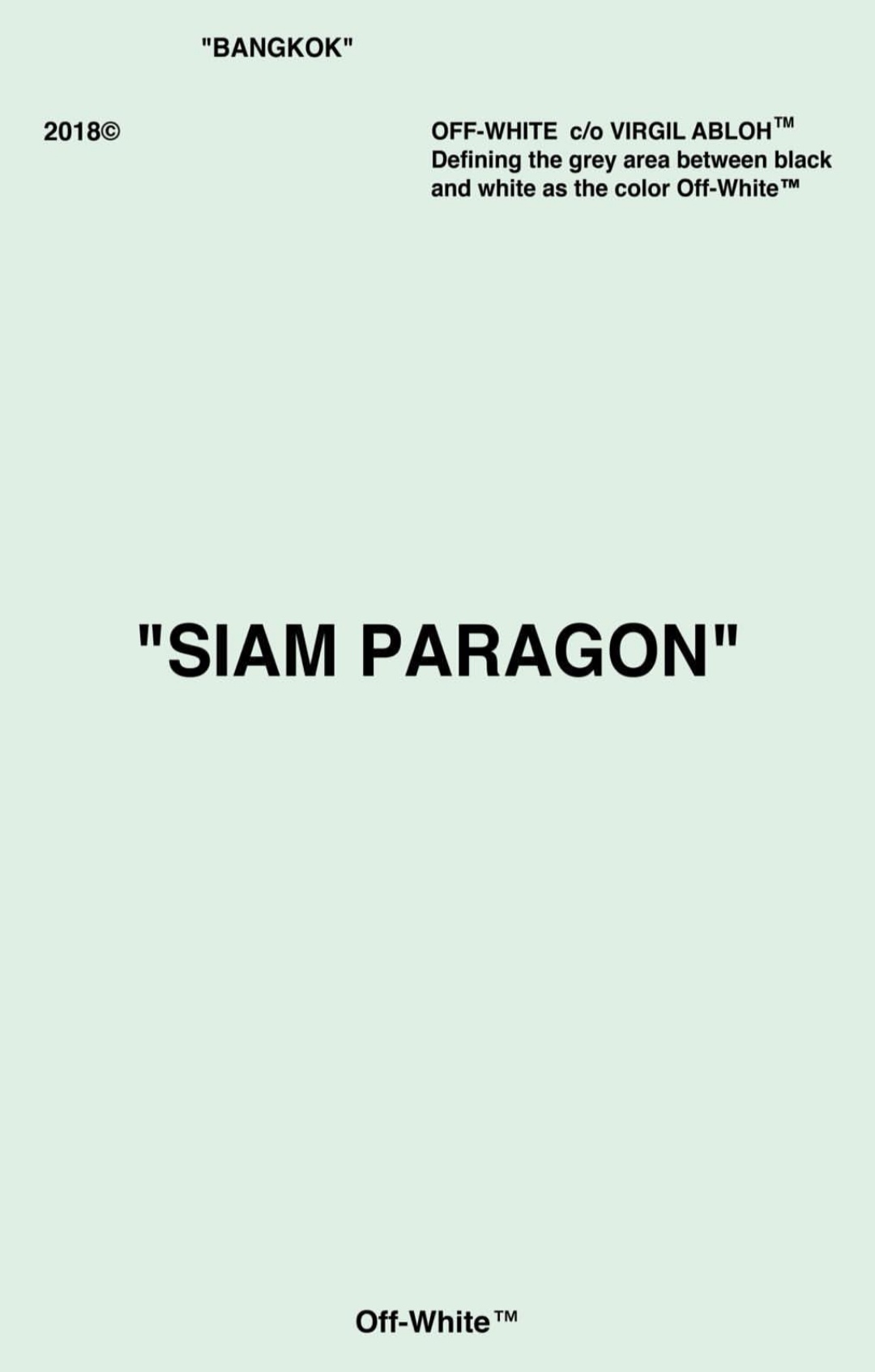 ล่าสุด Off-White™ จะเปิดตัวสาขาแรกในประเทศไทย ซึ่งทาง official instagram ของ Off-White™ ได้ปล่อยทีเซอร์สามภาพอย่างง่าย พร้อมเวิร์ดดิ้ง “BANGKOK” , “SIAM PARAGON” , “OPENING SOON” Off-White™ จะเปิดตัวในเดือนกันยายนนี้ ที่ Siam Paragon!!!