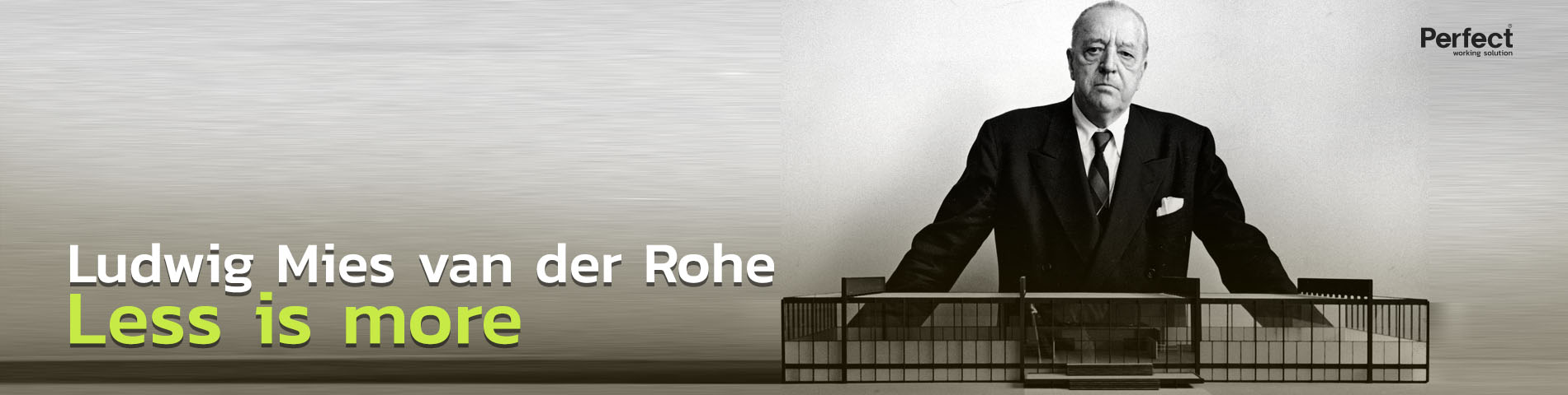 ที่กล่าวมานั้นเป็นเพียงส่วนหนึ่งของทั้งหมด แต่ไม่ใช่สำหรับ “Ludwig Mies van der Rohe” หนึ่งในสถาปนิกชื่อดังที่มีอิทธิพลมากที่สุดในศตวรรษที่ยี่สิบ เขา คือ ผู้สร้างคำจำกัดความ “Less is more” ในวงการสถาปัตยกรรม เขาสร้างผลงานที่มีชื่อเสียงไว้มากมาย แม้ว่าจะไม่ได้จบด้านสถาปัตยกรรมจากสถาบันใด ๆ เลยก็ตาม
