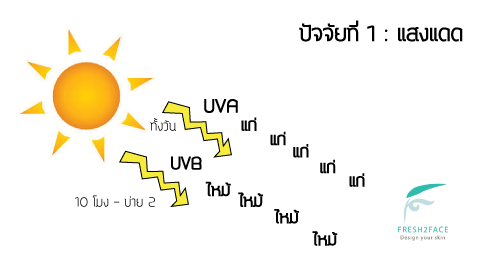 คำว่า “แสงแดด” เป็นศัตรูตัวสำคัญที่สุดของผิวกันเลยค่ะ นอกจากจะเป็นอันตรายต่อผิวหนังแล้วยังทำให้ผิวหนังเหี่ยวและแก่เร็วด้วยค่ะ