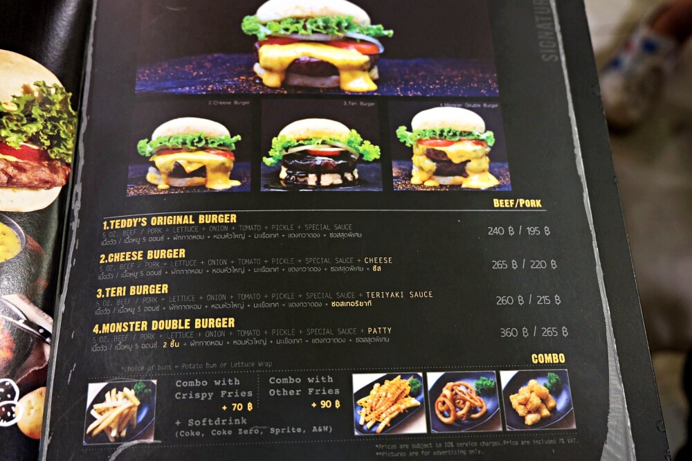 เนื้อบด Teddy’s Bigger Burgers เค้าใช้เนื้อนำเข้าจาก Australia ส่วนต้นคอไปถึงสันไหล่ (Ground Chuck) 100% ไม่ปรุงรสในเนื้อบด ซึ่งเอกลักษ์ของเนื้อส่วนนี้เมื่อนำมาบดคือมีความหอมและรสชาติเข้มข้น ถ้าเป็นเบอร์เกอร์ตามร้านทั่วไปเค้าจะเอาเนื้อวัวหลายๆ ส่วนมาบดรวมกันเป็นชิ้นครับ