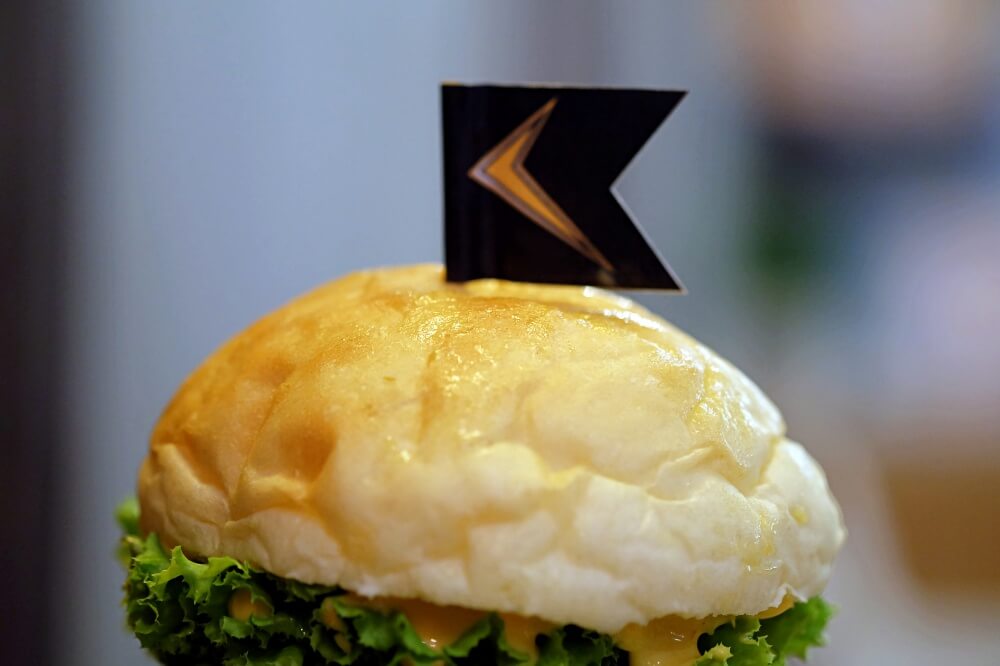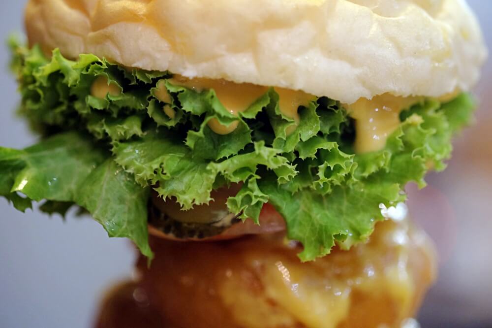 ขนมปังของเค้าใช้เป็น Potato Bun คือใช้มันฝรั่งเป็นส่วนผสมหลัก ก็จะได้กลิ่นหอมและความนุ่มที่เอกลักษณ์ของความเป็นมันมากกว่าเป็นแป้ง รสชาติออกหวานนิดๆ