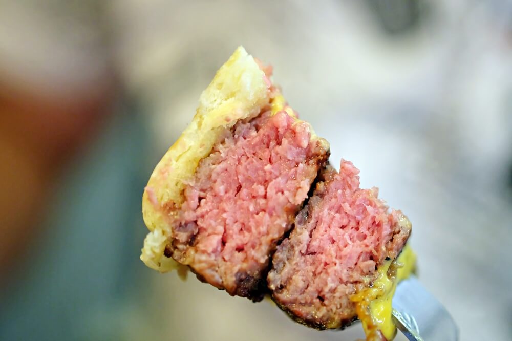 พอเข้าปาก กลิ่นหอมของเนื้อนี่พุ่งมาก่อนเลยครับ หอมม๊ากกกกกกก กัดเข้าไปแต่ละคำนี่มีความชุ่มฉ่ำออกมาเลย กลิ่นหอมและรสของเนื้อออกมาแบบสุดมาก ฟินโคตร
