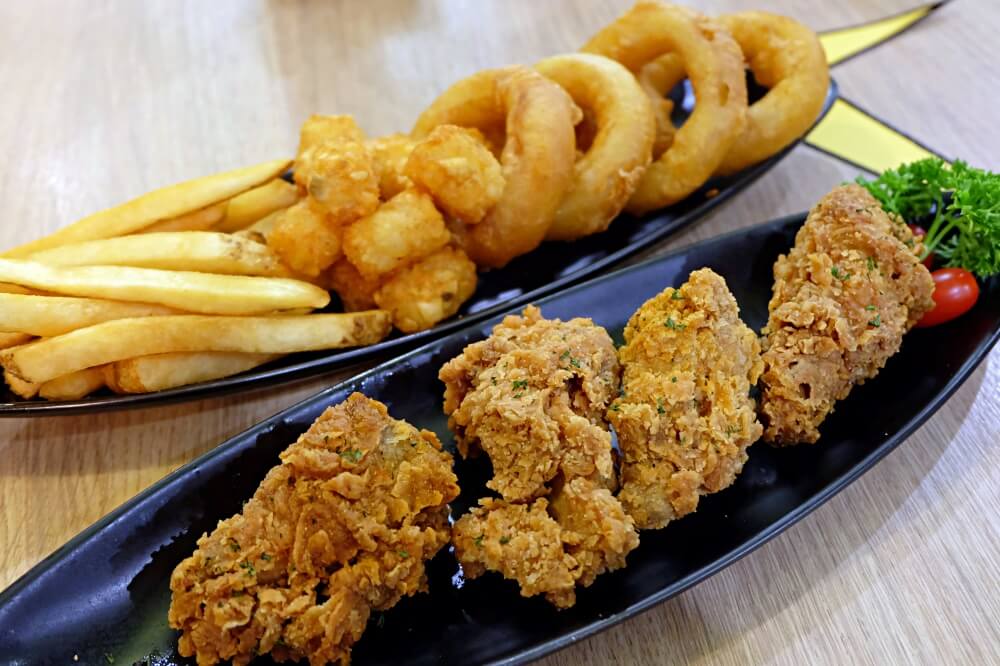 French Fries เค้าจะใช้มันฝรั่งติดเปลือก Tater Tots นี่รสชาติเข้มข้นดีครับ ไก่ทอดแป้งจะออกหนาหน่อย กรอบๆ โดยของทอดที่นี่จะมีรสเค็มนำเลยครับ ทานคำแรกๆ จะอร่อยมากๆ แต่ถ้าทานเยอะๆ นี่ลำบากเหมือนกัน ทานเป็น side dish ของทานเล่นพอ