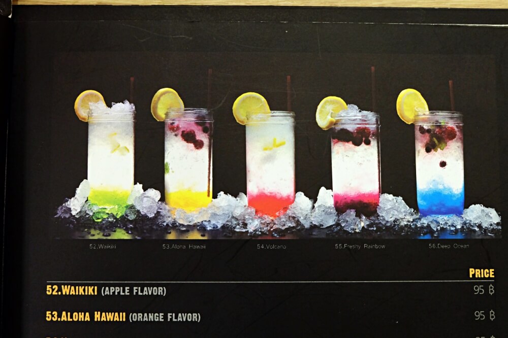 เครื่องดื่มก็จะเป็นพวกโซดา เปรี้ยวซ่า สไตล์ ฮาวายๆ และมิลค์เชคครับ