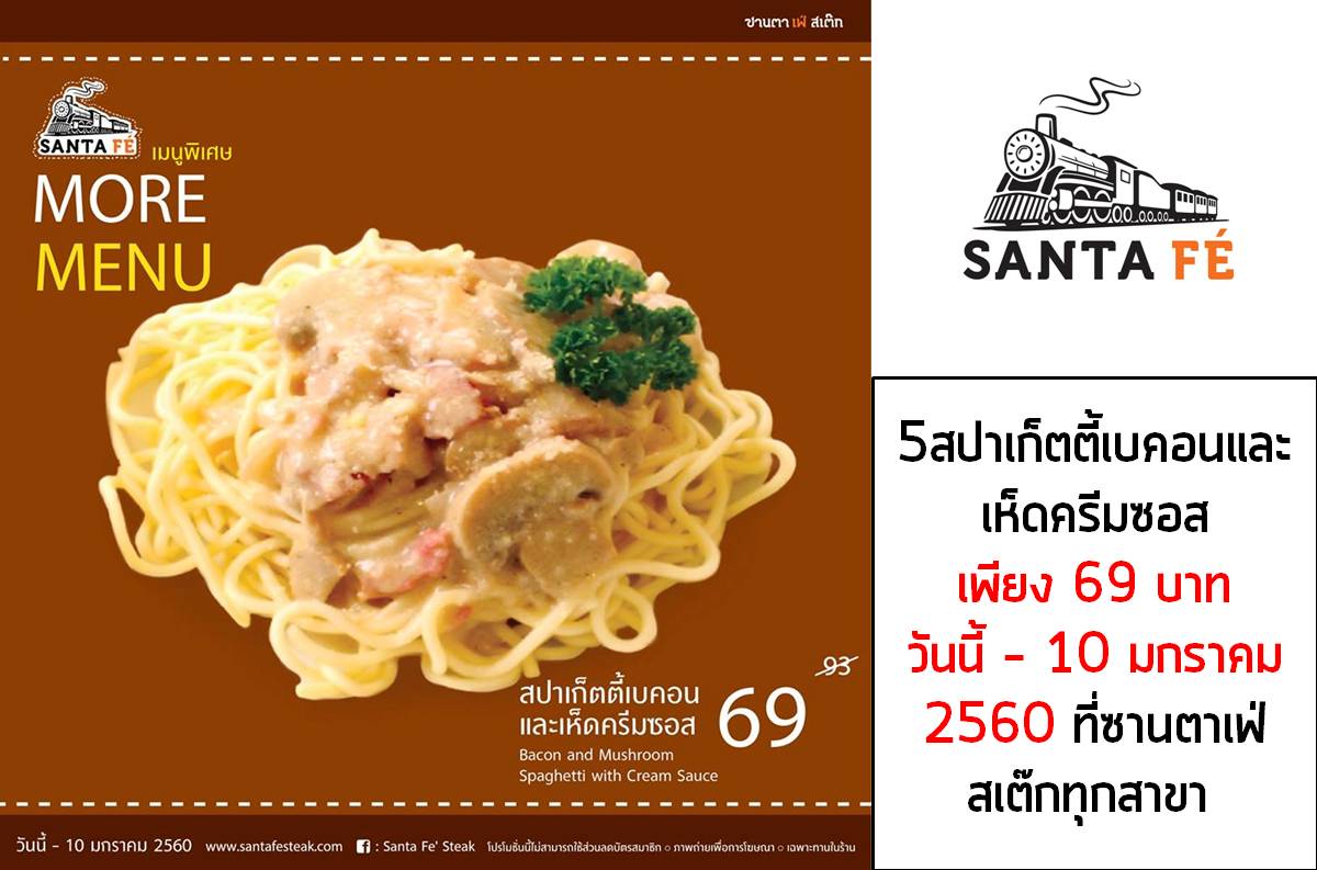 สปาเก็ตตี้เบคอนและเห็ดครีมซอสเพียง 69 บาท วันนี้ - 10 มกราคม 2560 ที่ซานตาเฟ่ สเต๊กทุกสาขา
