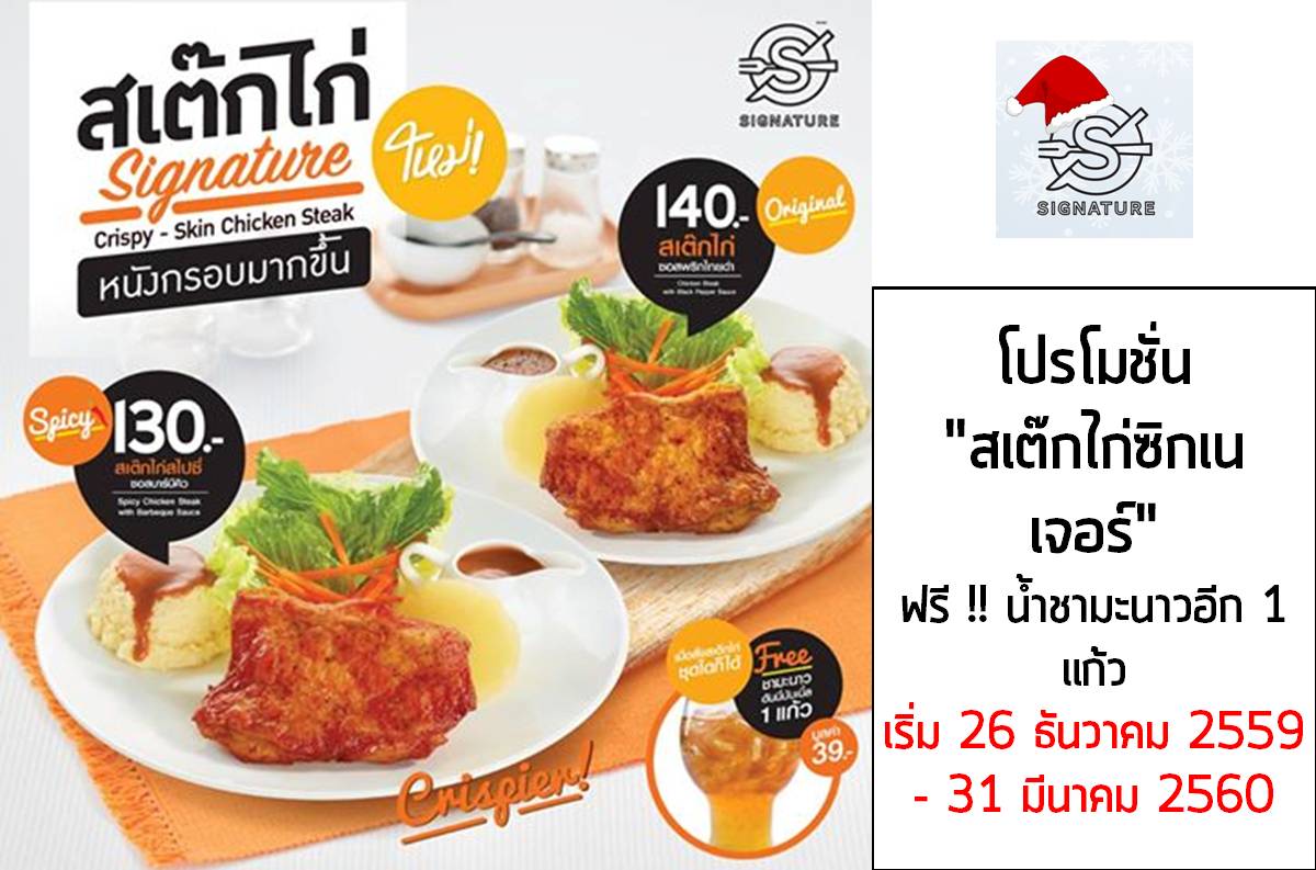 โปรโมชั่น"สเต๊กไก่ซิกเนเจอร์" ฟรี !! น้ำชามะนาวอีก 1 แก้ว เริ่ม 26 ธันวาคม 2559 – 31 มีนาคม 2560