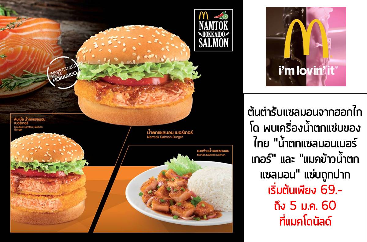ต้นตำรับแซลมอนจากฮอกไกโด พบเครื่องน้ำตกแซ่บของไทย "น้ำตกแซลมอนเบอร์เกอร์" และ "แมคข้าวน้ำตกแซลมอน" แซ่บถูกปาก เริ่มต้นเพียง 69.- ถึง 5 ม.ค. 60 ที่แมคโดนัลด์