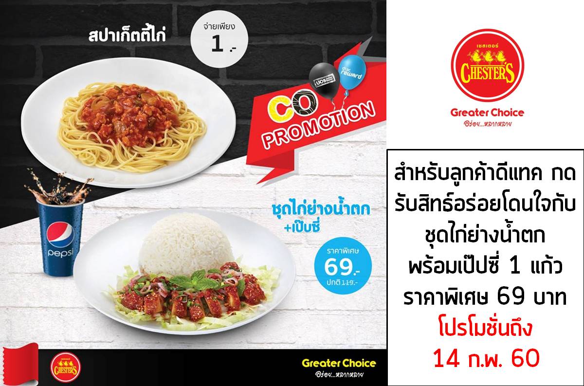 จัดให้สำหรับลูกค้าดีแทค กดรับสิทธ์อร่อยโดนใจกับชุดไก่ย่างน้ำตกพร้อมเป๊ปซี่ 1 แก้ว ราคาพิเศษ 69 บาท โปรโมชั่นถึง 14 ก.พ. 60