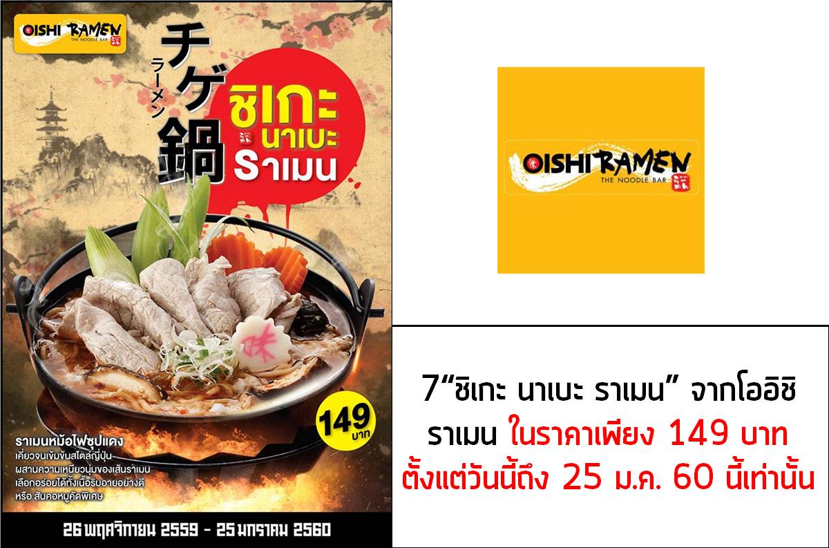 “ชิเกะ นาเบะ ราเมน” จากโออิชิ ราเมน ในราคาเพียง 149 บาท ตั้งแต่วันนี้ถึง 25 ม.ค. 60 นี้เท่านั้น