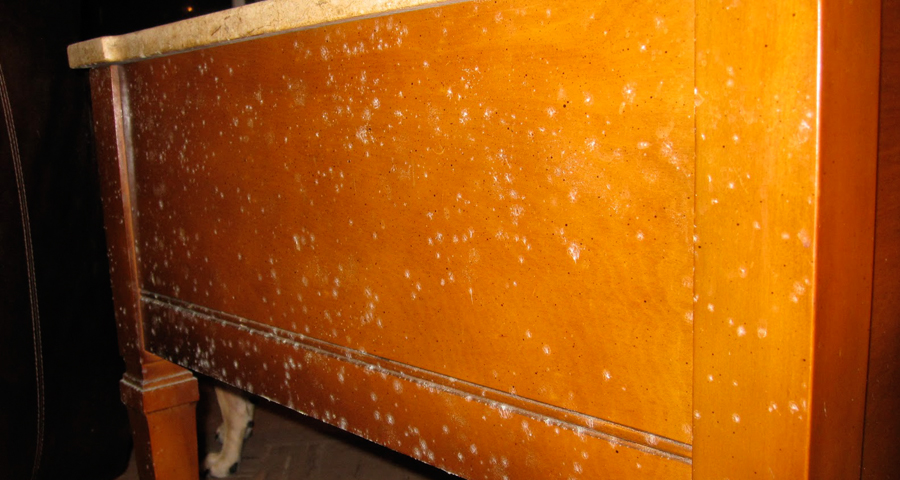 ใช้ผ้าชุบน้ำบิดให้หมาดๆ แล้วเช็ดทำความสะอาดด้วยผ้าแห้งอย่างสะอาด จากนั้นใช้แลคเกอร์ทาให้ทั่วเพื่อป้องกันไม่ให้อากาศชื้นมาสัมผัสกับไม้ และเพื่อป้องกันการเกิดของเชื้อราที่อาจจะเกิดขึ้นอีก