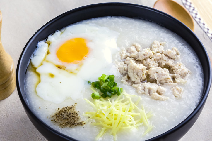 มื้อเช้า : โจ๊กหมูล้วนใส่ไข่ลวก 1 ชาม + แตงโม 3 ชิ้น