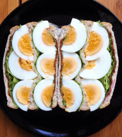 มื้อเช้า : Sandwich ทูน่าใส่ไข่ต้มครึ่งฟอง