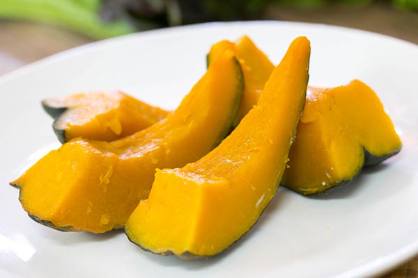 อาหารว่างยามบ่าย : ฟักทองนึ่ง 1 ชิ้นขนาดกลาง