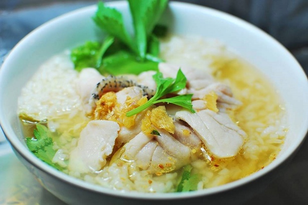 มื้อเช้า : ข้าวต้มปลา + ฝรั่ง 1 ลูก